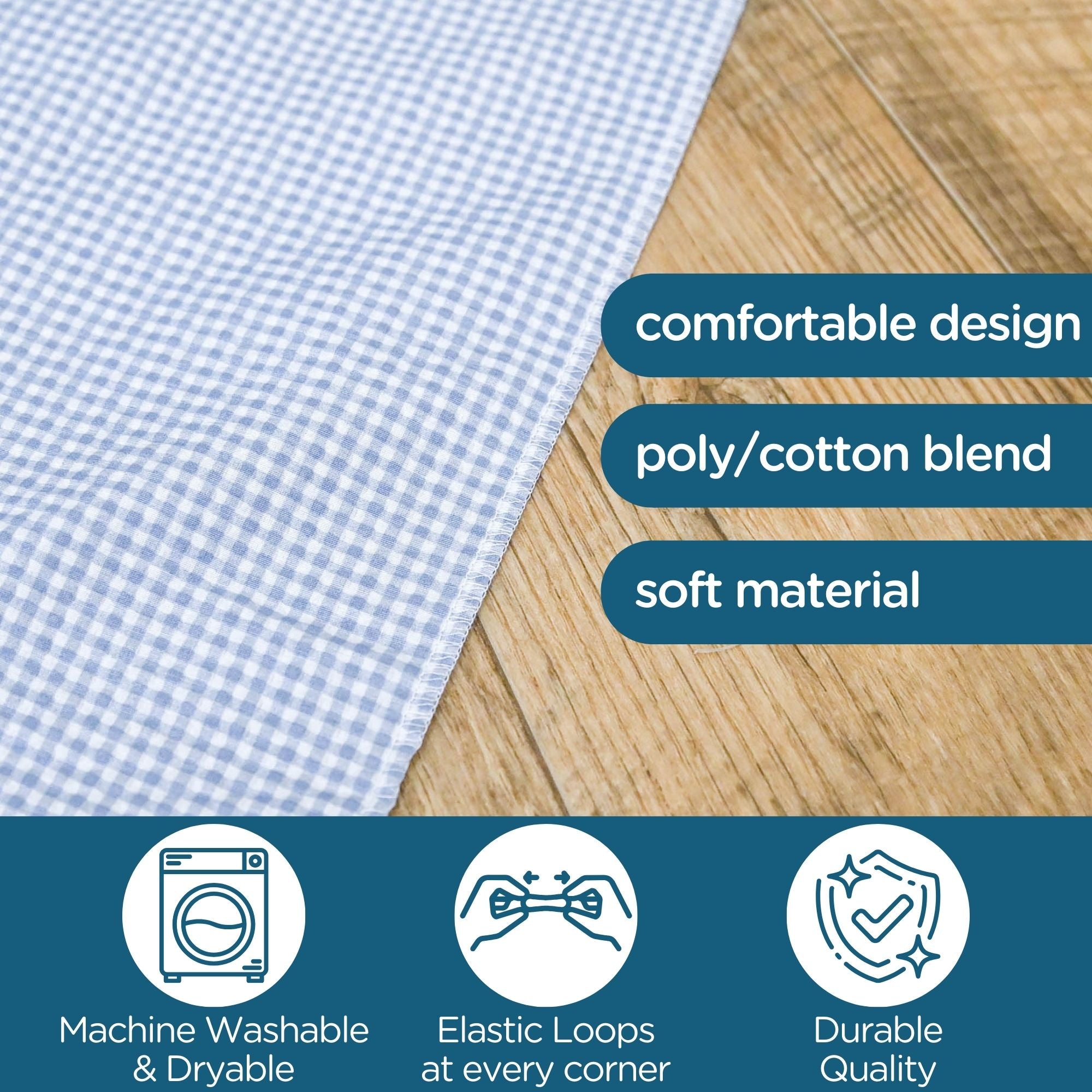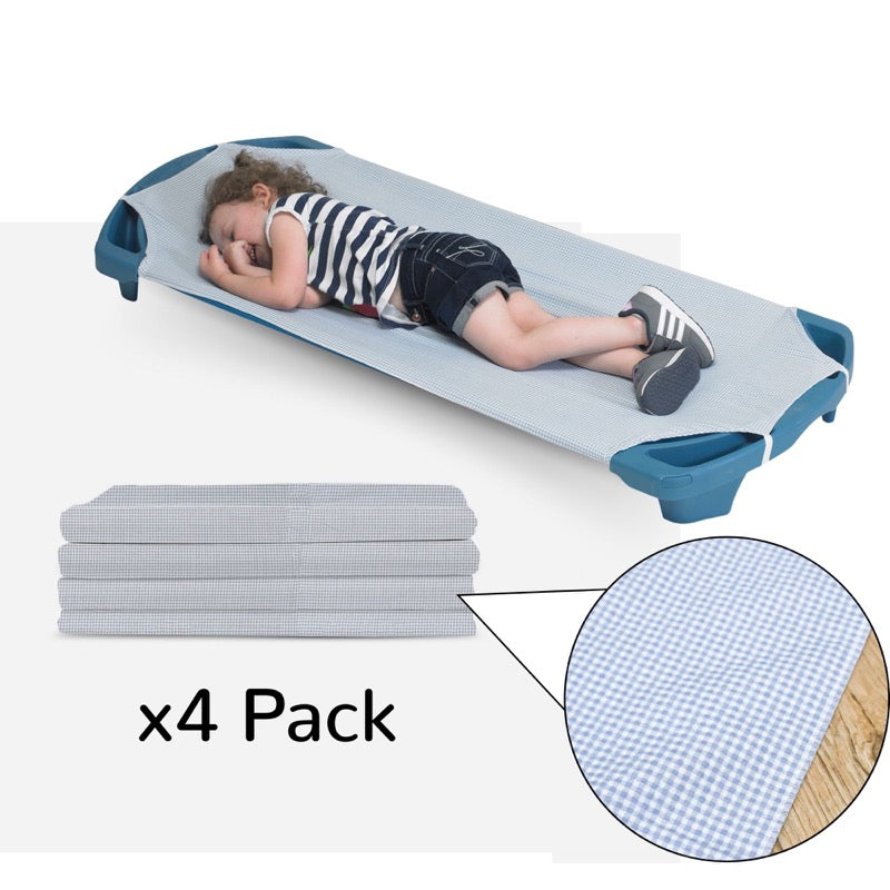The Angels Rest Gingham Cot Sheet - Standard - Set of 4 provides a comfortable and secure nap time solution for toddler cots and cots for sleeping. These durable daycare cot sheets are designed with elastic straps on all four corners to ensure a snug fit on sleeping cots for kids. Machine washable and easy to maintain, these toddler cot sheets are a practical choice for creating a clean and comfortable rest environment. Perfectly sized for standard daycare cots, this set of 4 ensures you’re always prepared for nap time.