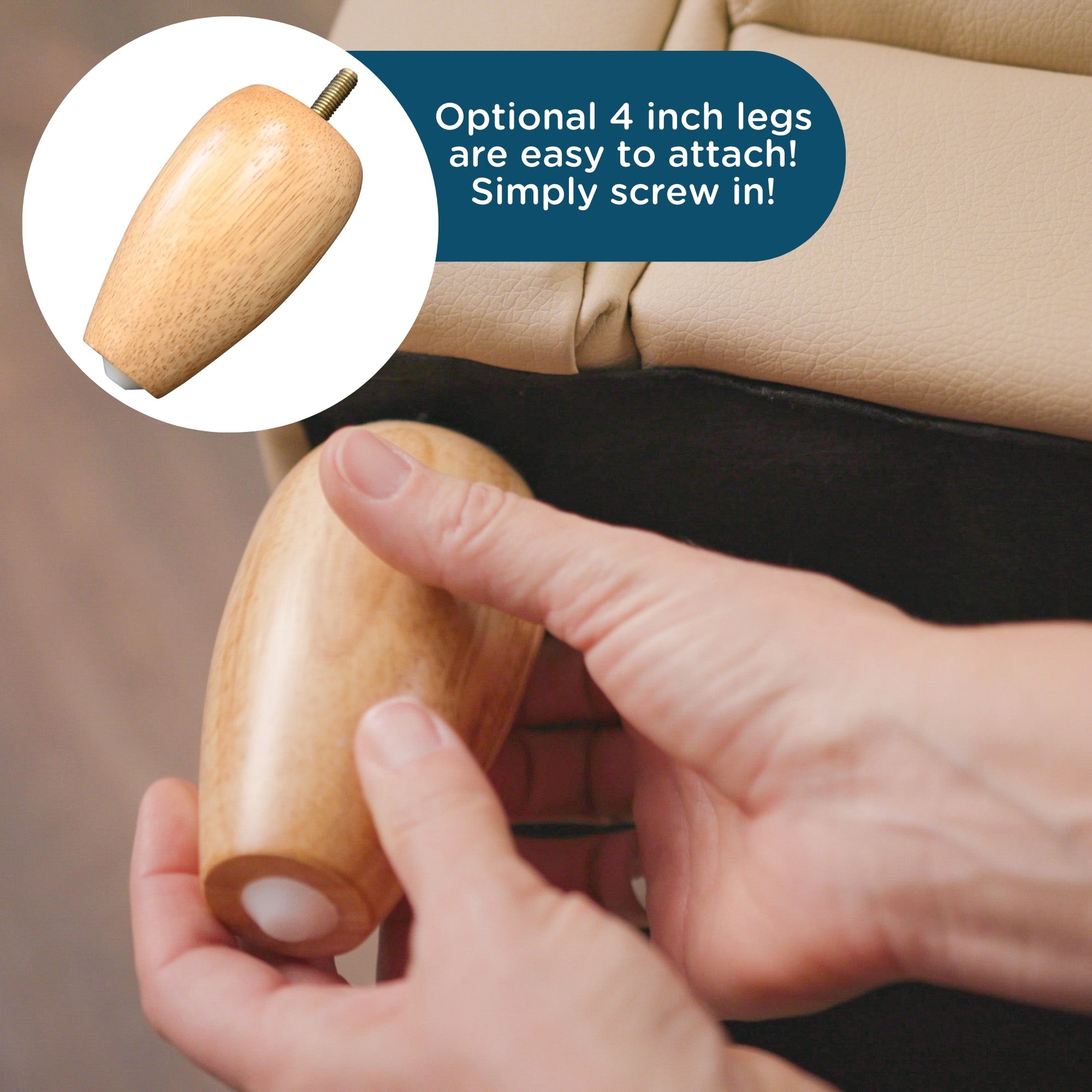 Rediscover the perfect blend of fun and functionality with the As We Grow® Set – Buff. These chairs are crafted with sturdy hardwood frames, dense foam padding, and covered in soft vegan-leather material, providing cozy, easy-to-clean, and durable seating for kids. The As We Grow® Set creates an adorable reading nook or hangout zone where kids can socialize. Our furniture not only boasts high-end materials and impeccable tailoring but also accommodates growing children. Each piece comes with four natural wood legs that easily increase the seat height from 8-1/2″ to 12-1/2″ without the need for additional hardware. Simply thread the legs into the provided holes for instant height adjustment.