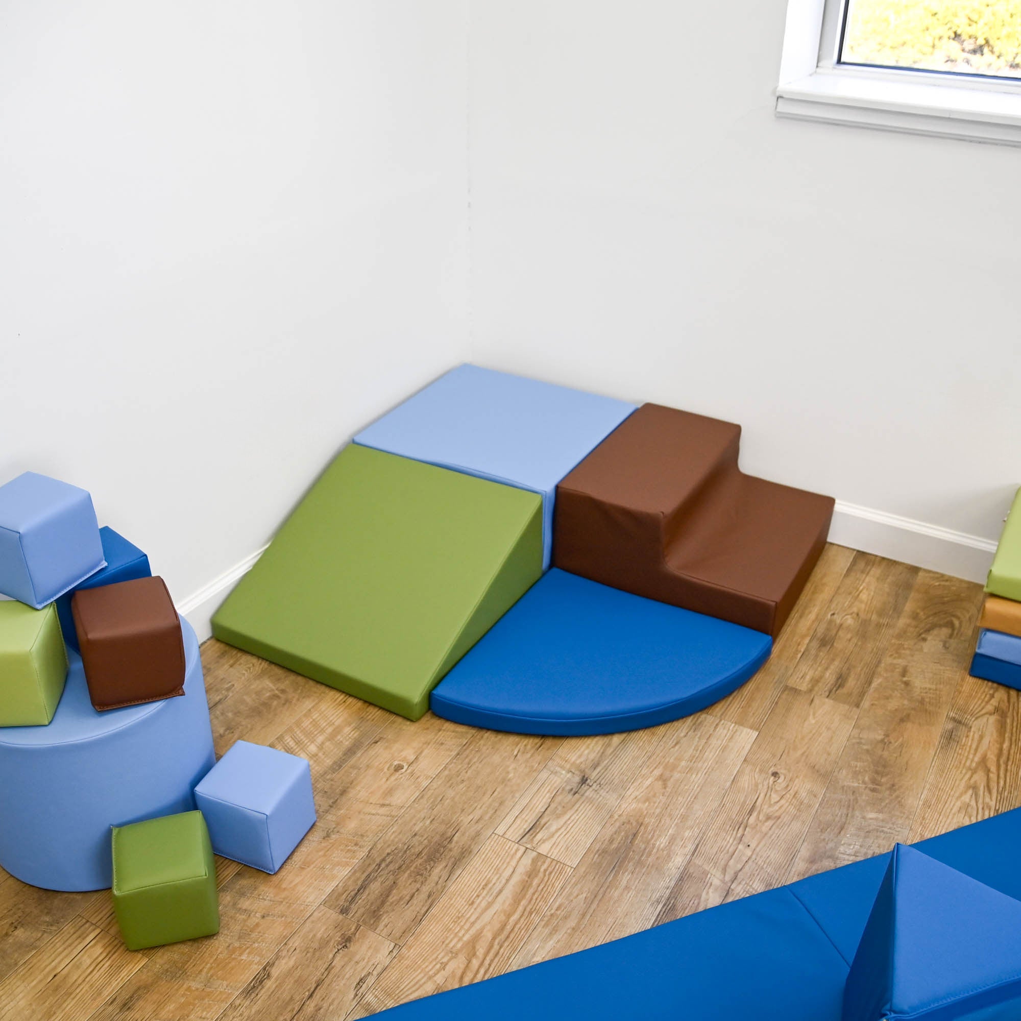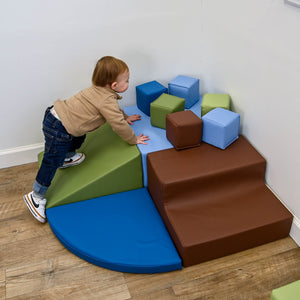 Discover the joy of tranquil play with the Snuggle Corner Set. This thoughtfully designed climber is the perfect addition to any playroom, nursery, or living area. With its calm color palette and soft, sturdy construction, it provides a safe space for your child to grow and explore. The different shapes and textures stimulate imagination and physical activity, promoting healthy development. Create a serene corner for your little adventurer today! MUST BE PLACED AGAINST WALLS IN A CORNER FOR SAFE USE.
