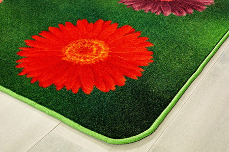 Flowers and colors for a bright and cheerful space with this photo-real carpet. Ideal for nature inside and garden theme playrooms and classrooms. Seats up to 30.