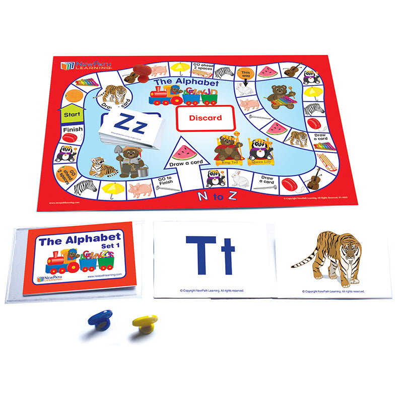 Build your students' understanding of the alphabet with engaging games and matching activities correlating letters with corresponding images. Designed for either teacher-directed instruction or independent learning for groups of 2-4 students, the learning center provides grade-leveled curriculum materials, making it perfect for differentiated instruction. By allowing students of varying abilities to work independently or cooperatively, it is perfect for use in the classroom, after-school programs, or even at home for test preparation or practice and review! Provides enough materials for up to 4 students, including a Curriculum Mastery Game, with a laminated, double-sided game board; 30 illustrated, self-checking game cards to reinforce student comprehension; and game pieces for 4 players. Also features 2 sets of 30 Flash Cards, printed on heavy 4" x 5.5" stock, which challenge students to correlate associated attributes. Features Teacher's Guide providing simple, step-by-step instructions and additional skill-building activities. Packaged in a durable, polyester pouch for years of use.
