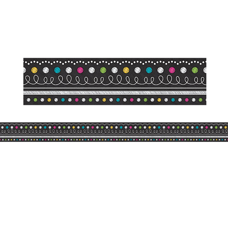 Use this Chalkboard Brights Straight Rolled Border Trim to liven up your classroom! Create fresh looks for bulletin boards, windows, walls, and class projects. Mix and match with coordinating products (stickers, notepads, awards, etc.) for a classroom theme. 50 foot continuous roll. (3" x 50')