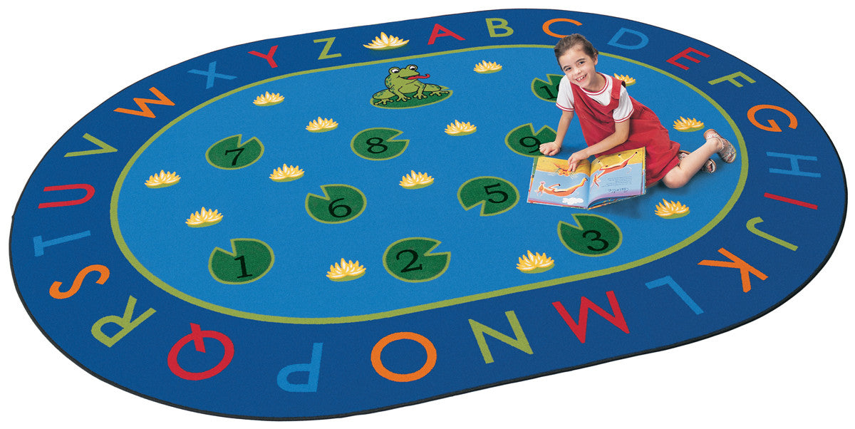 Hippity hop to the top where you will meet a cute little frog! Children learn their numbers 1 through 10 and the alphabet while developing gross motor skills. Circle time or anytime, this area rug promotes fun while learning.
