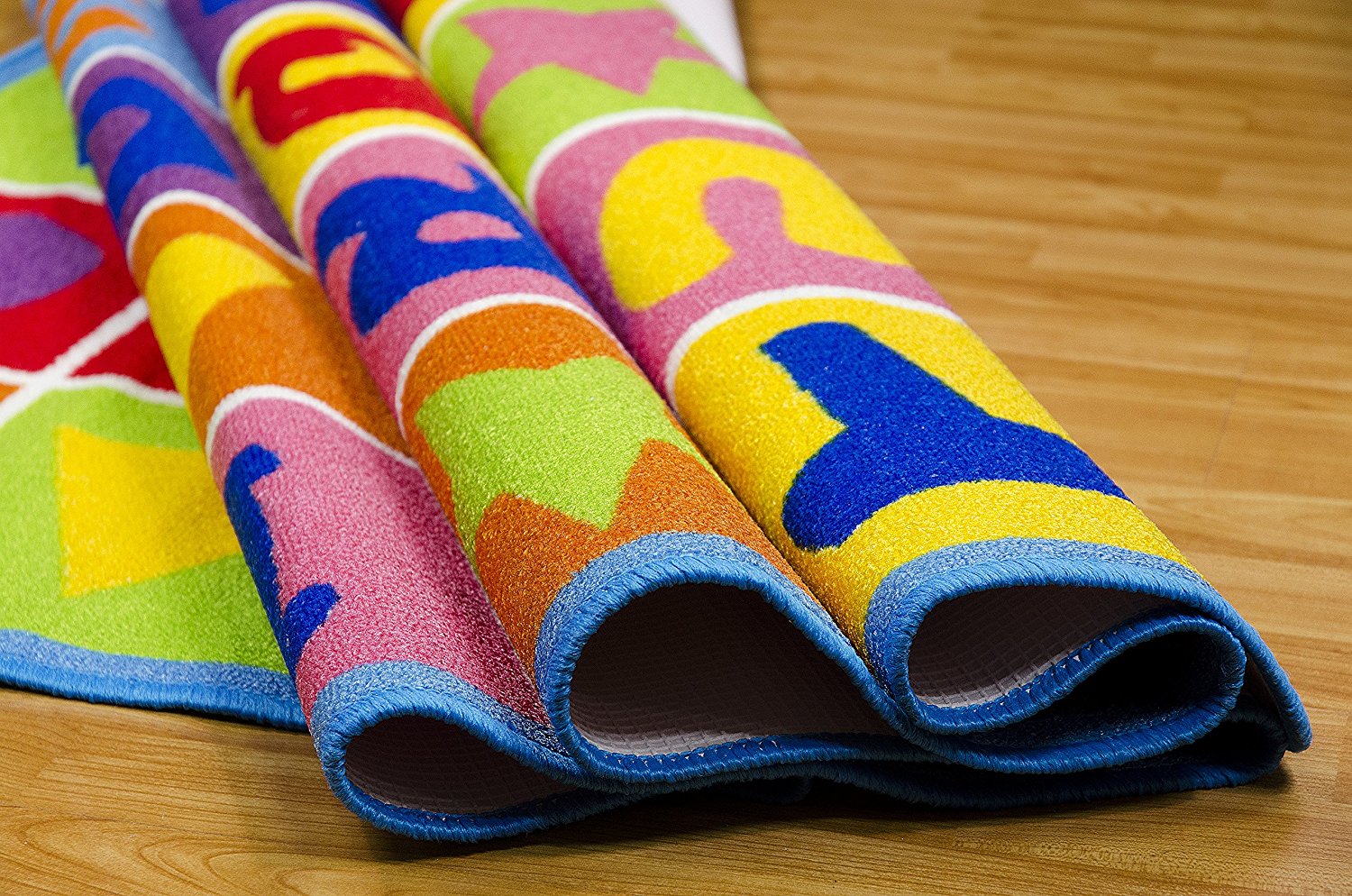Skid-proof backing is safe on all floor surfaces . No slip, non-skid gel backing for extra comfort and safety. 16-Color combo technique to create bright & vivid design, colors & details. Easy cleaning by vacuum, machine washable , Stain and soil resistant.