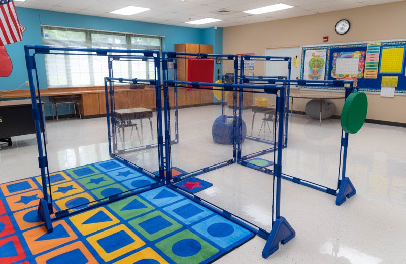 The modern classroom utilizes distinct and separate flex-spaces for different learning activities to maximize engagement. Clear PlayPanels® are the perfect room dividers for any commercial daycare, playroom or homeschool where clear sightlines from flex-space to flex-space is a priority for the parent or caregiver. Separate your room into a sleeping space, an art station, a reading nook or for any other purpose. These panels are lightweight and easy to fold and store. Clear portion of PlayPanel is made of clear 20 gauge vinyl. Dimensions 59 1/2" x 47 1/2"
