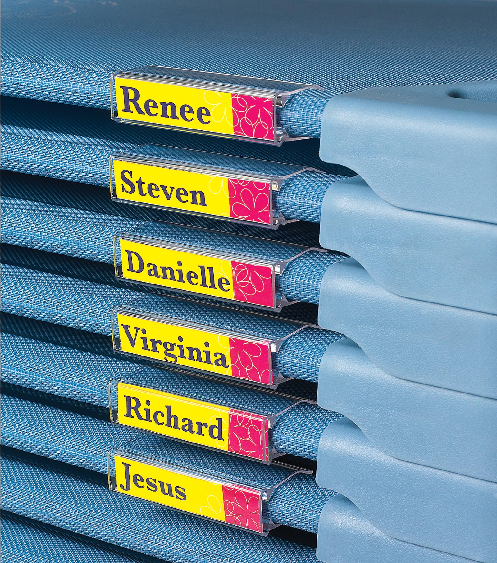Angels Rest® Cot Name Clips fit all Angeles® cots. Name clips fit easily to the side of cots. Clips hold 3/4” name insert (inserts not included).