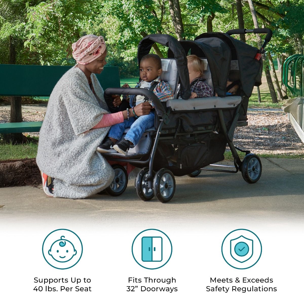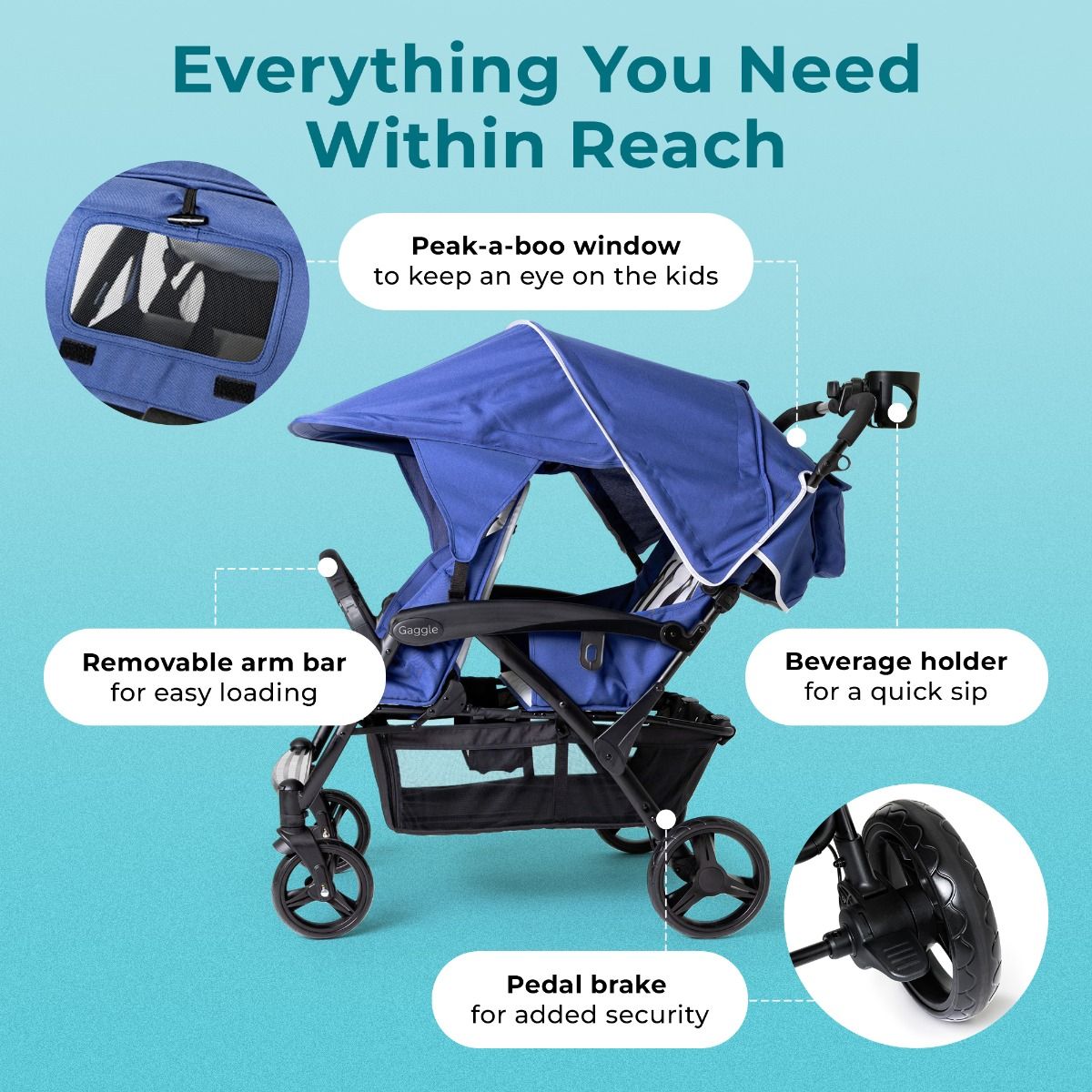 Gaggle® Quad Sport stroller collection redefines everything you thought you knew about multi-child strollers. Striking the perfect balance