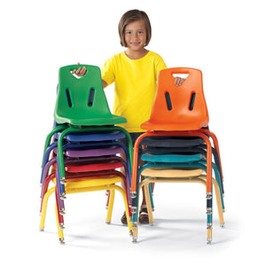 Child-friendly design promotes seating comfort, durability and attractive styling. Heavy gauge steel frame. Nylon glides reduce noise. Polypropylene shell is E-Z to clean, prevents blushing and dissipates annoying static electricity. Non-exposed rivets prevent snags. Five year warranty.