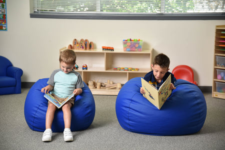 The 26" diameter Bean Bags are made of durable vinyl, double stitched seams with a double safety locking zipper. Tested and approved for ages 2 years and older. Meets all CPSIA and ASTM safety standards. 1 year warranty. Refill beads available.