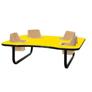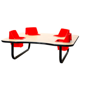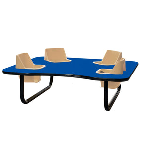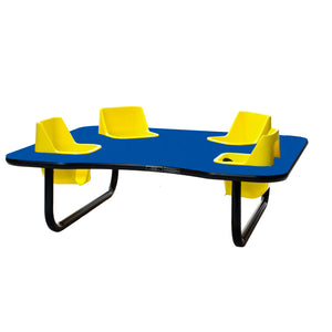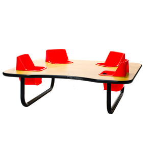 Toddler Tables 4-Seat Low Height Space Saver Feeding Table is a compact table with four built in seats that will contain children in a fun way. This table is perfect for feeding, teaching and playing, while you remain hands free to do your job best. The removable seats are comfortable and easy to clean, and the seat belts provide maximum safety. The tubular steel legs and table top are super strong and meant to withstand a toddler's busy day. Children love the close interaction with each other as well. 42” x 48” x 14” Tall. Avg Ship time 5-7 days