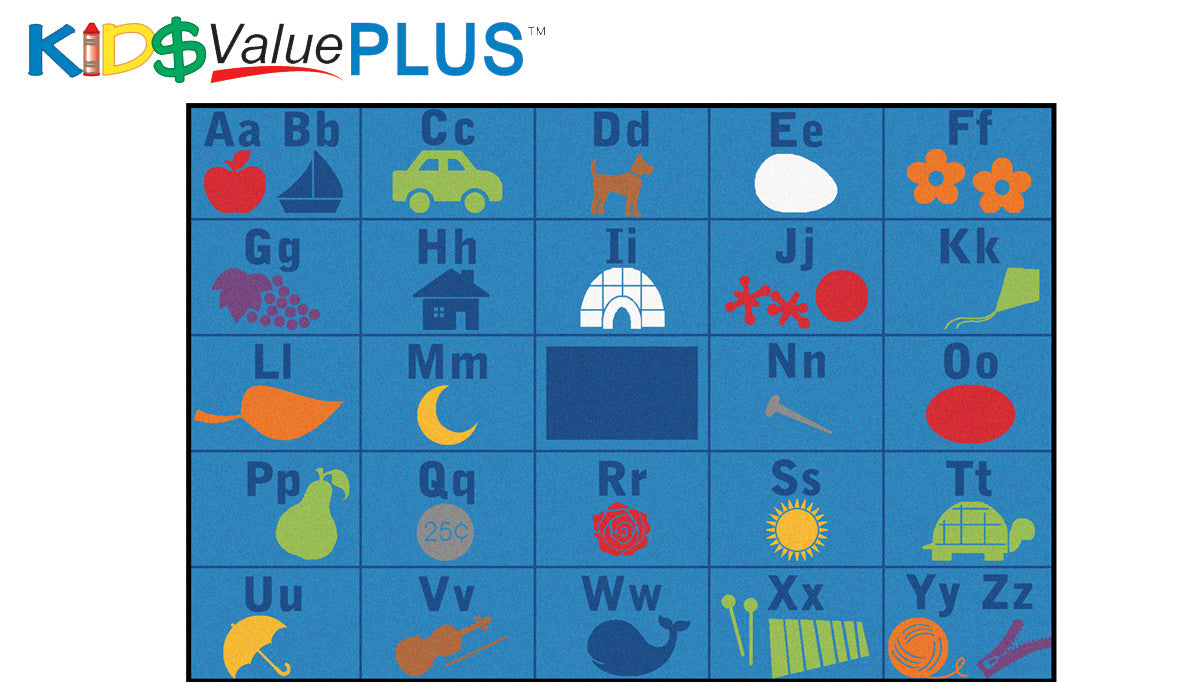 Letters and pictures make learning the alphabet fun. The alphabet is featured in upper and lowercase letters along with objects for children to name and associate the letter of the alphabet with.The KIDS Value Plus line sports upgraded KIDply® backing and edge yarn for long-lasting carpets that stay looking great.