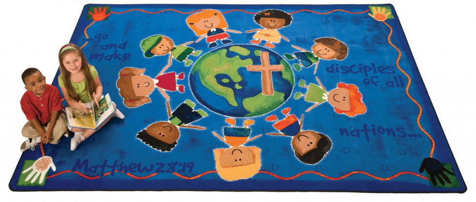 Red and Yellow, Black and White, each one of theses adorable kids will make anyone want to share the gospel with others. Featuring the verse Matthew 28:19; this rug will be a fantastic addition to any room.