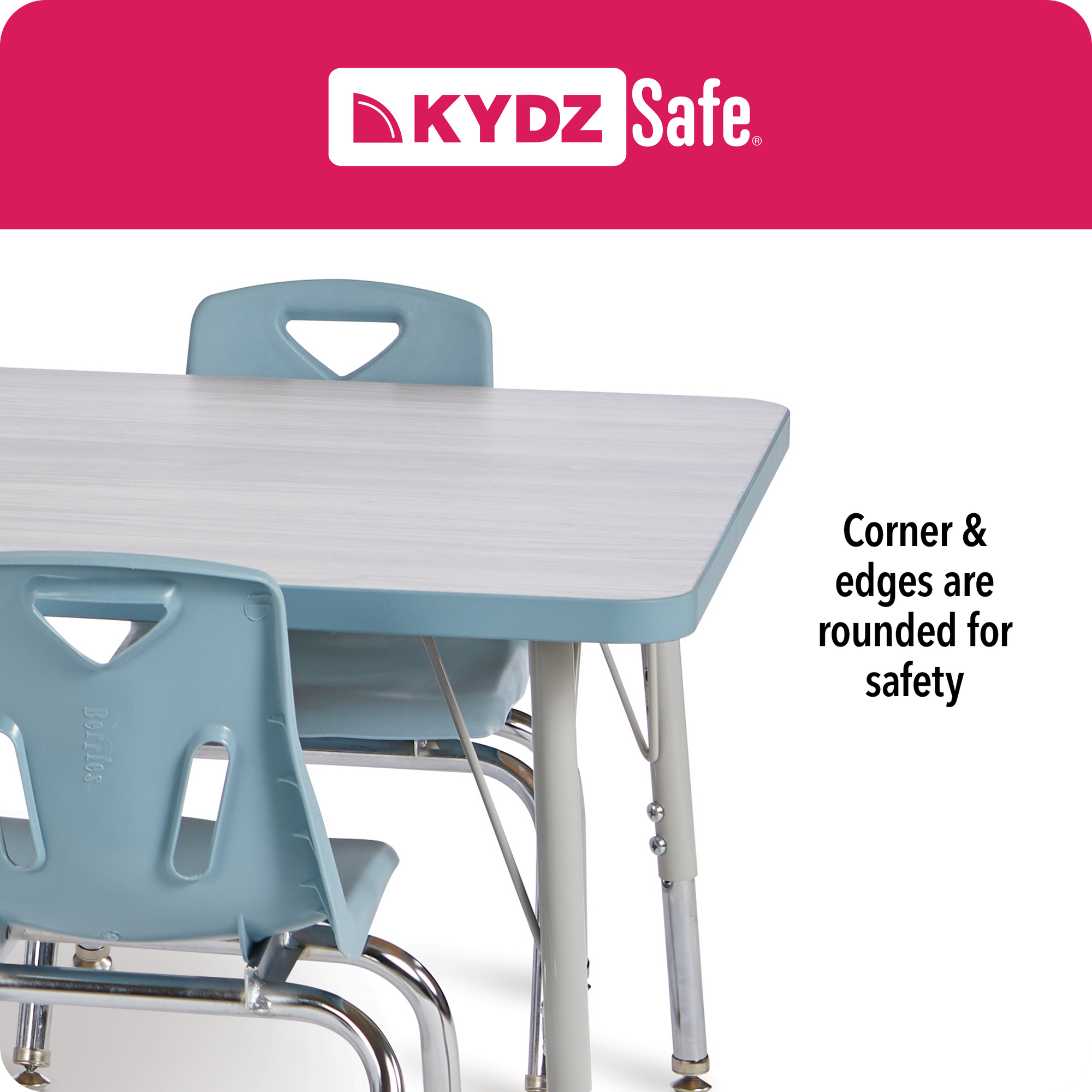 Looking for an individual student desk? This Rectangle Student Desk is perfect for students learning at home or spaces where shared desk space isn’t an option. The top is made of a Maple laminate and features black TRUEdge® and powder-coated legs. The E-height legs fit most children ages 2-9 years of age and adjust in one-inch increments with our extra-safe dual-screw leg adjustability system. Need a way to store papers? Add on our Berries Store-It Drawer Kit!