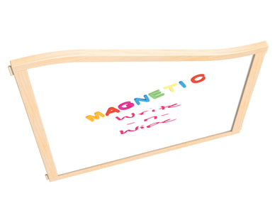 The Magnetic Write-n-Wipe Cascade Panel makes it easy to connect different height items together. The Panel transitions items from A-Height (35.5" high) to S-Height (48.5" high) and has a Magnetic Write-n-Wipe surface to provide tactile learning and help improve fine motor skills. One side Magnetic Write-n-Wipe, other side KYDZTuff® finished hardboard. Connect one end to an A-Height Hub and the other to an S-Height Hub.