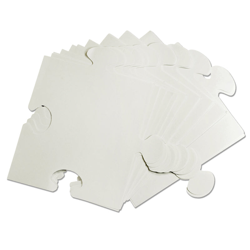 These convenient pre-cut puzzle paper sheets are perfect for collage art, self-portraits and family pictures, or math and literacy lessons. In the classroom, children can each decorate their own puzzle shape using a variety of art media to express their individuality, celebrate diversity, or to link numbers and letters together. The puzzle shapes are designed to align from any side. Attach them using tape, pin them to bulletin boards, or glue them down to poster boards for an awesome classroom display! Includes: 100 pieces, 9" x 9" (23 cm x 24 cm) and guide.