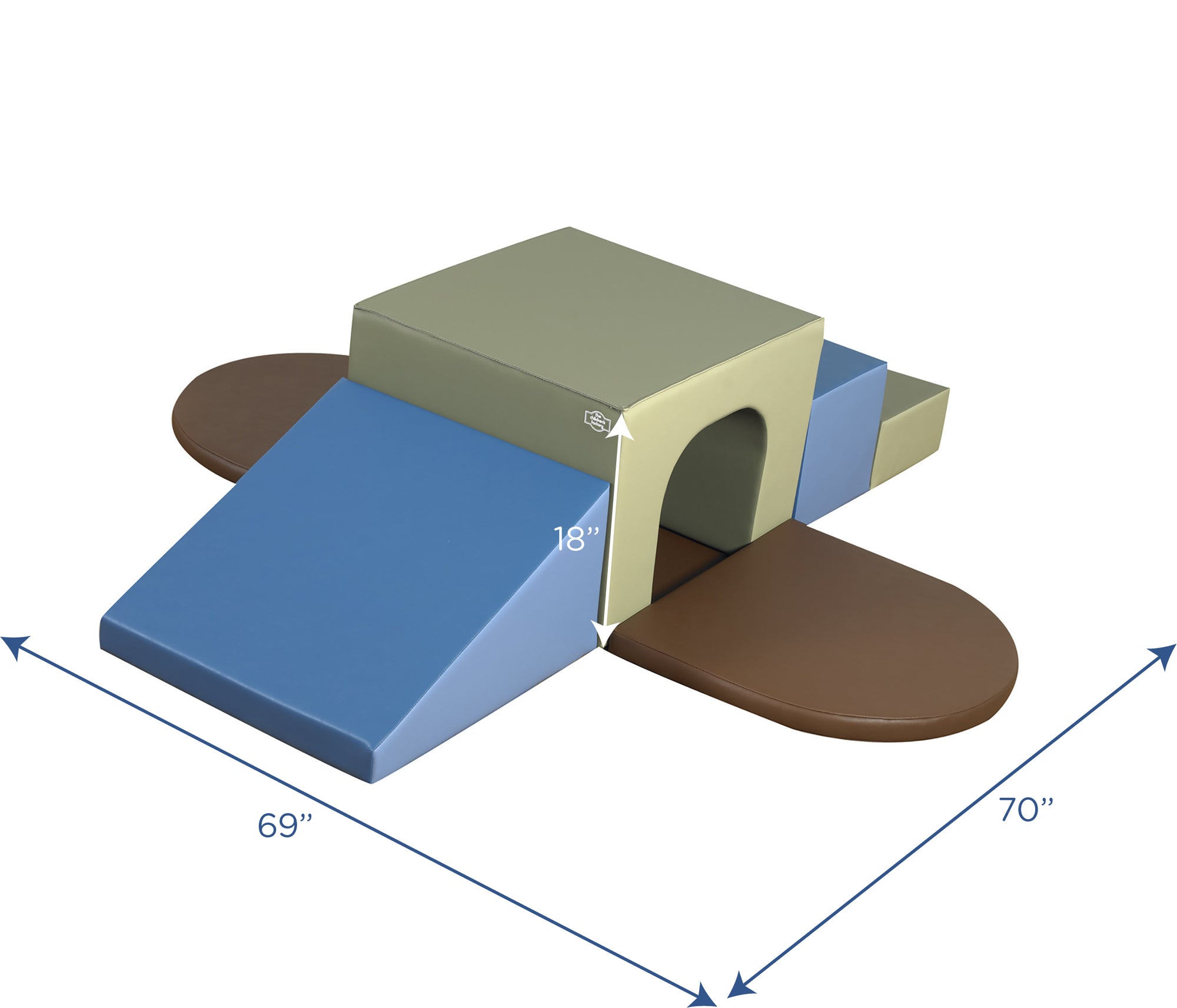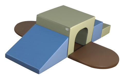 This Children's Factory block set of big padded foam shapes is like having giant, soft, oversized building blocks to climb over and under. The Children's Factory Cozy Woodland Climb-Up Tunnel features include: