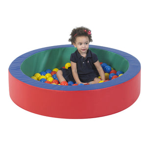 4" thick soft foam sides, 10" high, includes 180 balls. 36" inside
