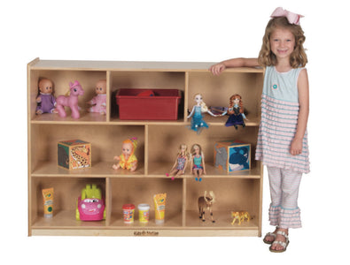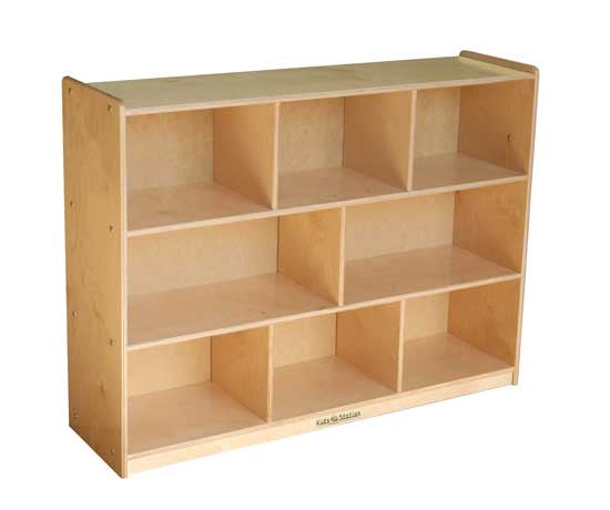 The eight roomy sections in this cabinet provide extra storage space to efficiently organize toys and other items. All Kids' Station Birch-Ply cabinet edges are beautifully polished to a high-gloss sheen using an extensive 3-step buffing process. 8 Sections. 48"L x 13"D x 36"H.