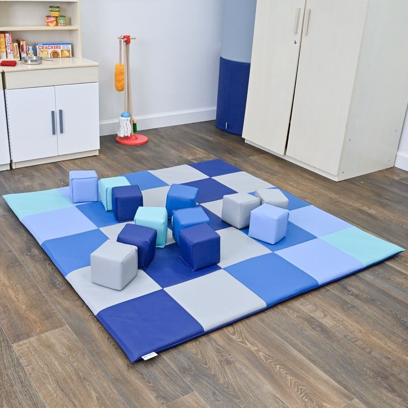 • Ready to Play: No assembly required so the fun begins right out of the box. The 1″ thick mat boasts squares in 5 serene colors, creating a calming environment for playtime. Soft blocks are crafted to fit little hands, making them easy to carry, toss, and stack.