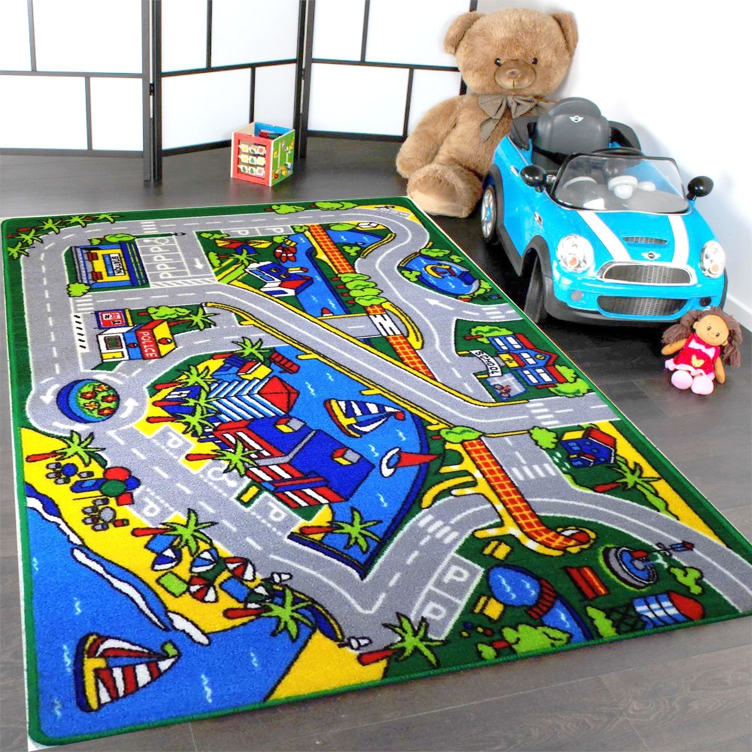 Skid-proof backing is safe on all floor surfaces . No slip, non-skid gel backing for extra comfort and safety. 16-Color combo technique to create bright & vivid design, colors & details. Easy cleaning by vacuum, machine washable , Stain and soil resistant.