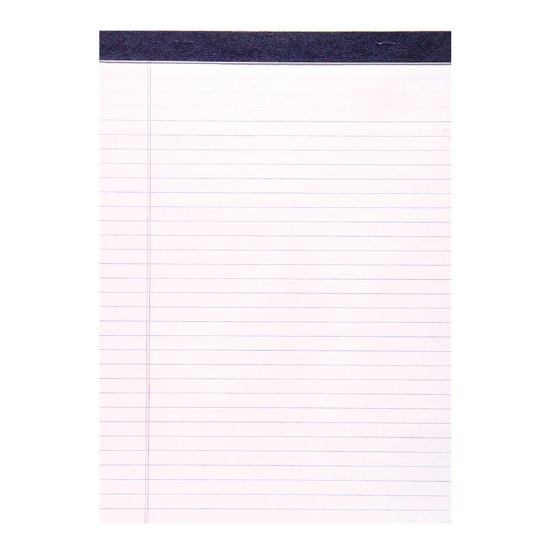 White paper legal pad. Smooth, white, 15lb writing paper has legal ruled blue lines and double red margin lines. Sheets are micro-perforated for EZ removal. 34pt chipboard backs add stability. Stapled and taped construction. Full sheet size is 8.5" x 11.75", and tear-out size is 8.5" x 11". 50 sheets per pad. Proudly made in USA!