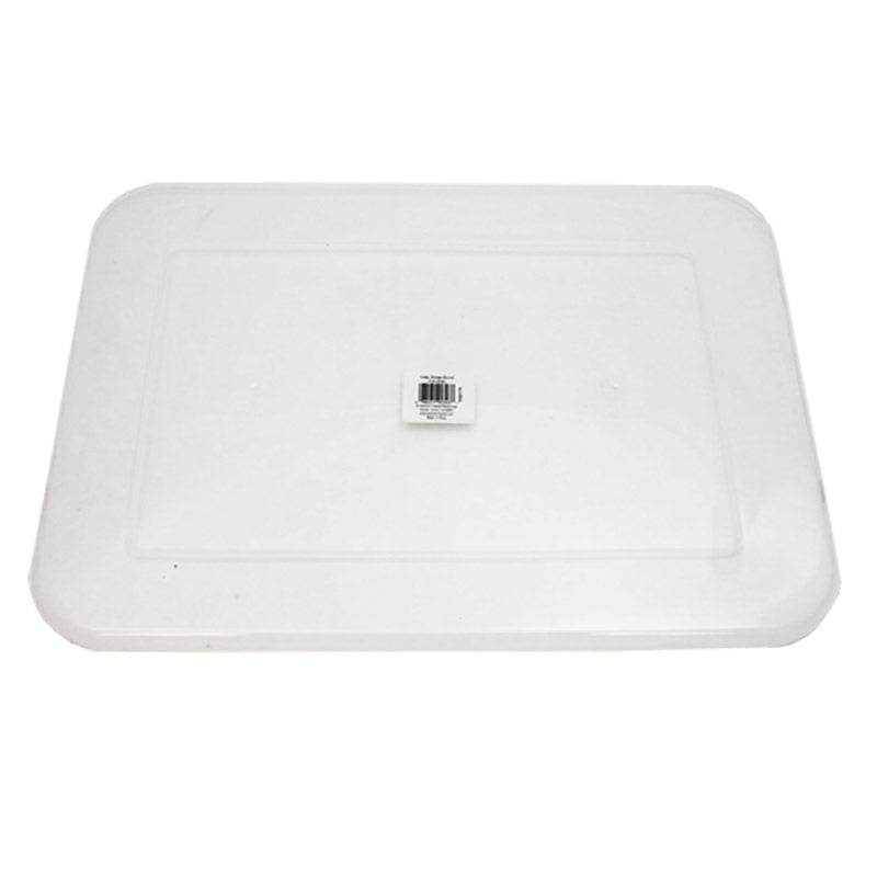 Keep your storage bins securely closed with these clear plastic lids. Measures approximately 11-3/8" L x 16-3/8" W x 1/2" H.