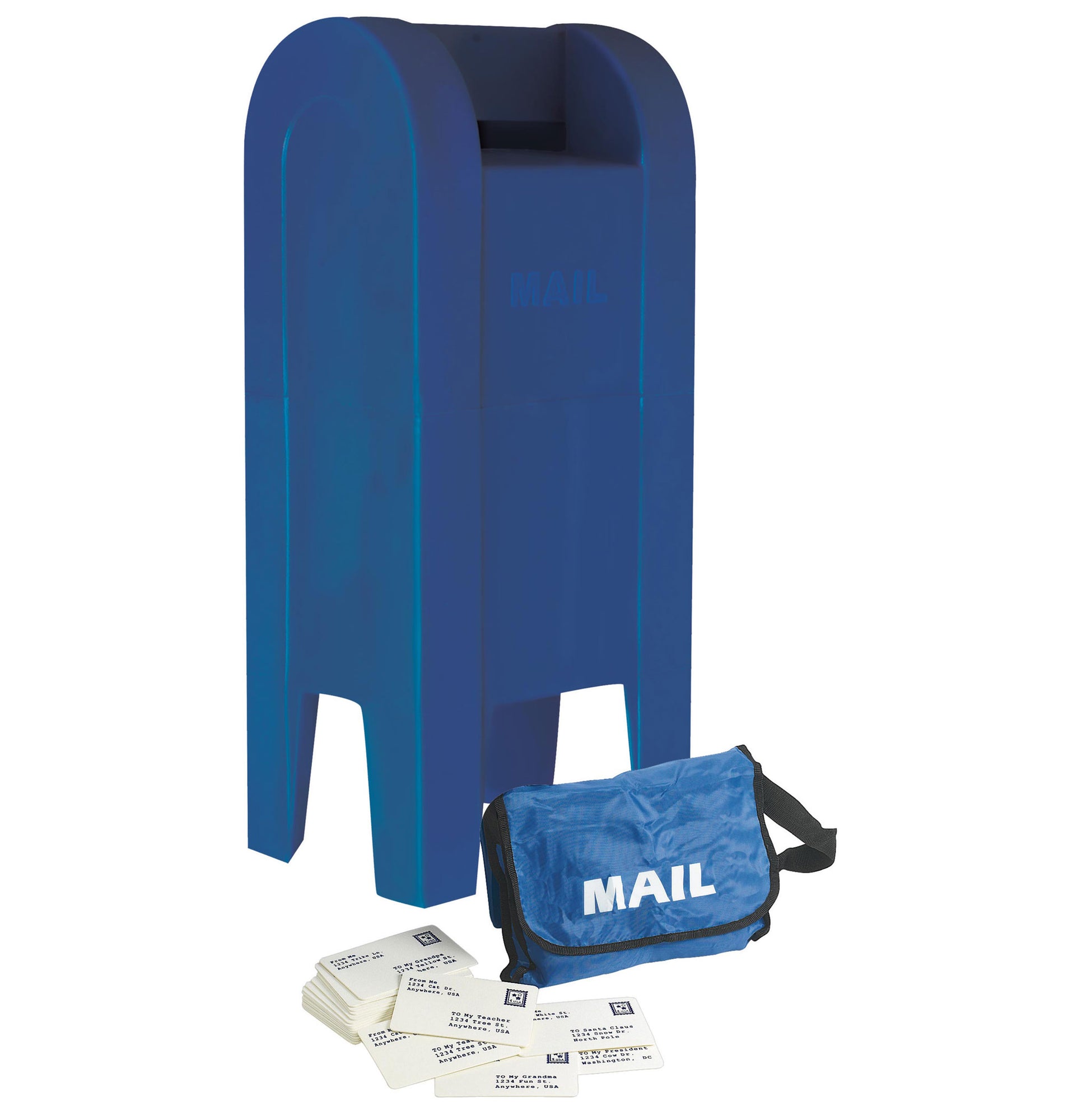 El set de buzón y bolsa de correo incluye un buzón de plástico resistente y una bolsa de correo, ¡un complemento divertido para cualquier aula! El buzón está hecho de poliuretano resistente e impermeable con una ranura frontal realista para el correo. La abertura trasera permite retirar el correo.