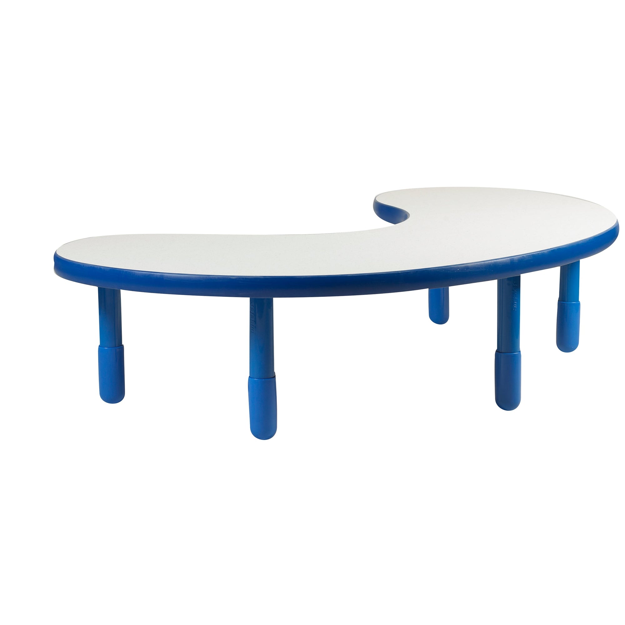 Las mesas BaseLine® son resistentes y duraderas, sin herrajes expuestos y con bordes redondeados. Las fundas protectoras evitan deslizamientos, reducen el ruido y previenen la oxidación. Son fáciles de limpiar gracias a sus superficies laminadas y bordes impermeables. La mesa Kidney tiene un tablero blanco con detalles en azul rey. Las patas de 40 cm se enroscan fácilmente en la mesa sin necesidad de herrajes, lo que facilita el montaje. La mesa mide 165 cm de largo x 96 cm de ancho x 40 cm de alto.
