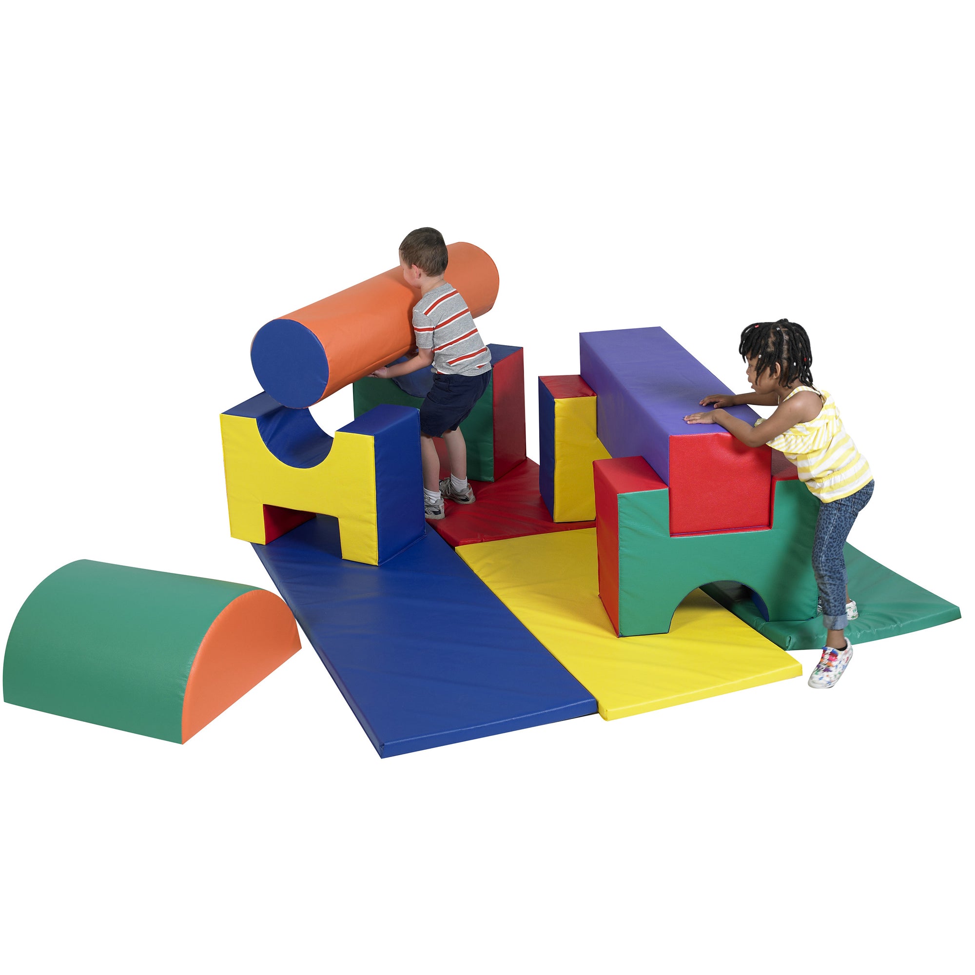 11 piezas. Diseñado para niños de 3 a 6 años. Conjuntos de gimnasia suaves con espuma de diferentes densidades y soportes reversibles. Úselo individualmente o en grupos.
