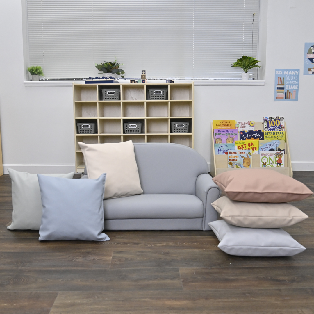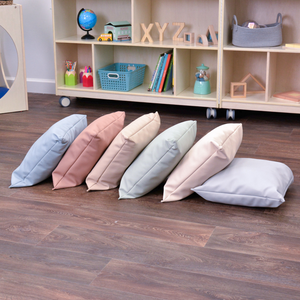 Sumérgete en la comodidad con nuestro juego de 6 almohadas Puffy de 43 cm. Fabricadas con espuma con certificación CertiPUR-US y revestidas en cuero vegano fácil de limpiar, estas coloridas almohadas aportan un toque acogedor y vibrante a cualquier aula. Perfectas para leer o crear un ambiente de aprendizaje dinámico.