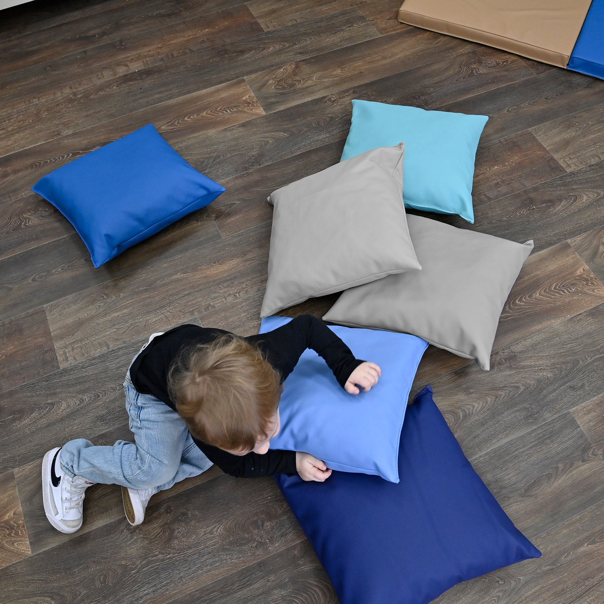 Sumérgete en la comodidad con nuestro juego de 6 almohadas Puffy de 43 cm. Fabricadas con espuma con certificación CertiPUR-US y revestidas en cuero vegano fácil de limpiar, estas coloridas almohadas aportan un toque acogedor y vibrante a cualquier aula. Perfectas para leer o crear un ambiente de aprendizaje dinámico.