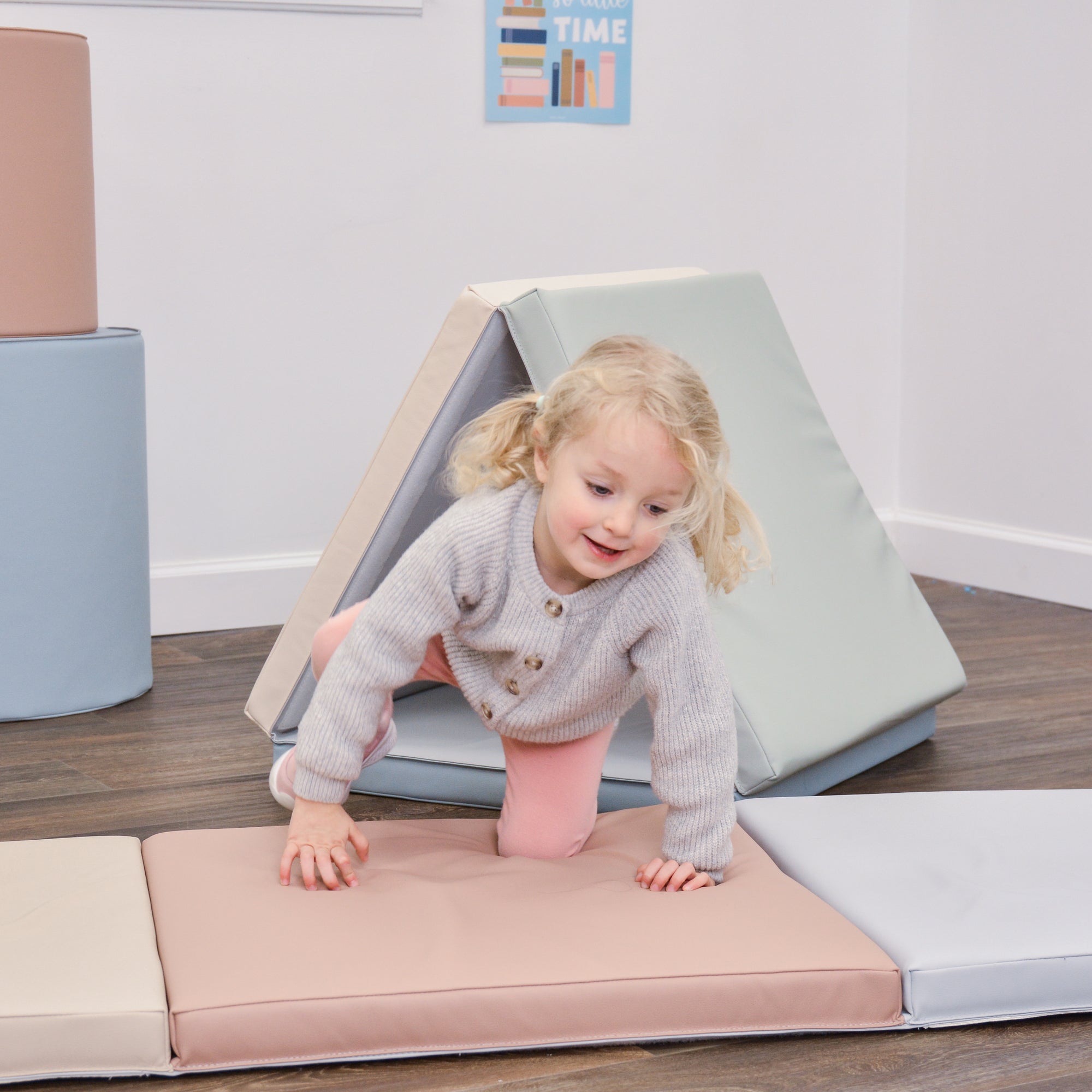 Formas multifuncionales: cada tapete se pliega sin esfuerzo en un túnel triangular o se pueden unir ambos para formar una acogedora casa club con forma de cubo: un refugio privado para las aventuras de su hijo.