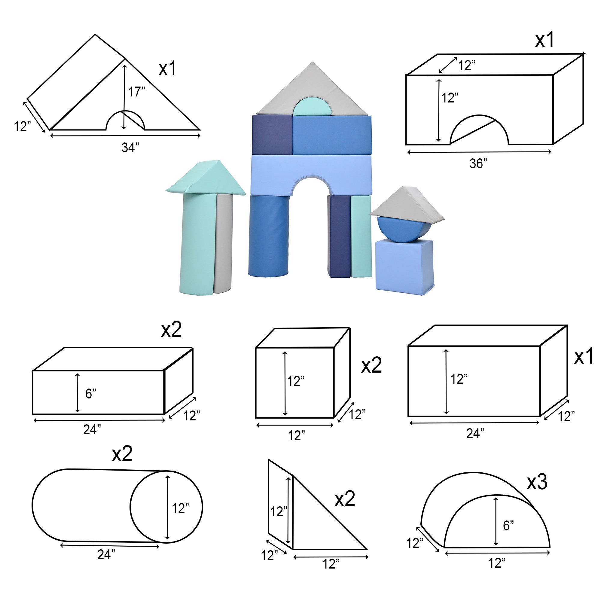 Bloques modulares de 12" n.° 60425 - Juego de 14 (juego B) - Tranquility