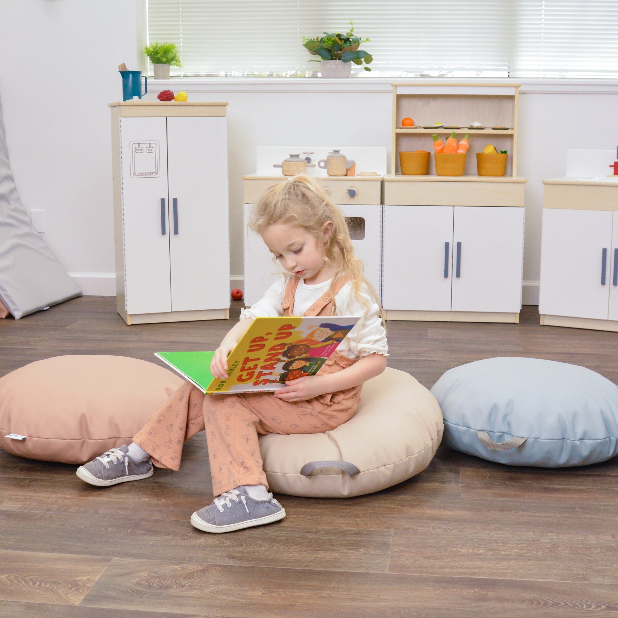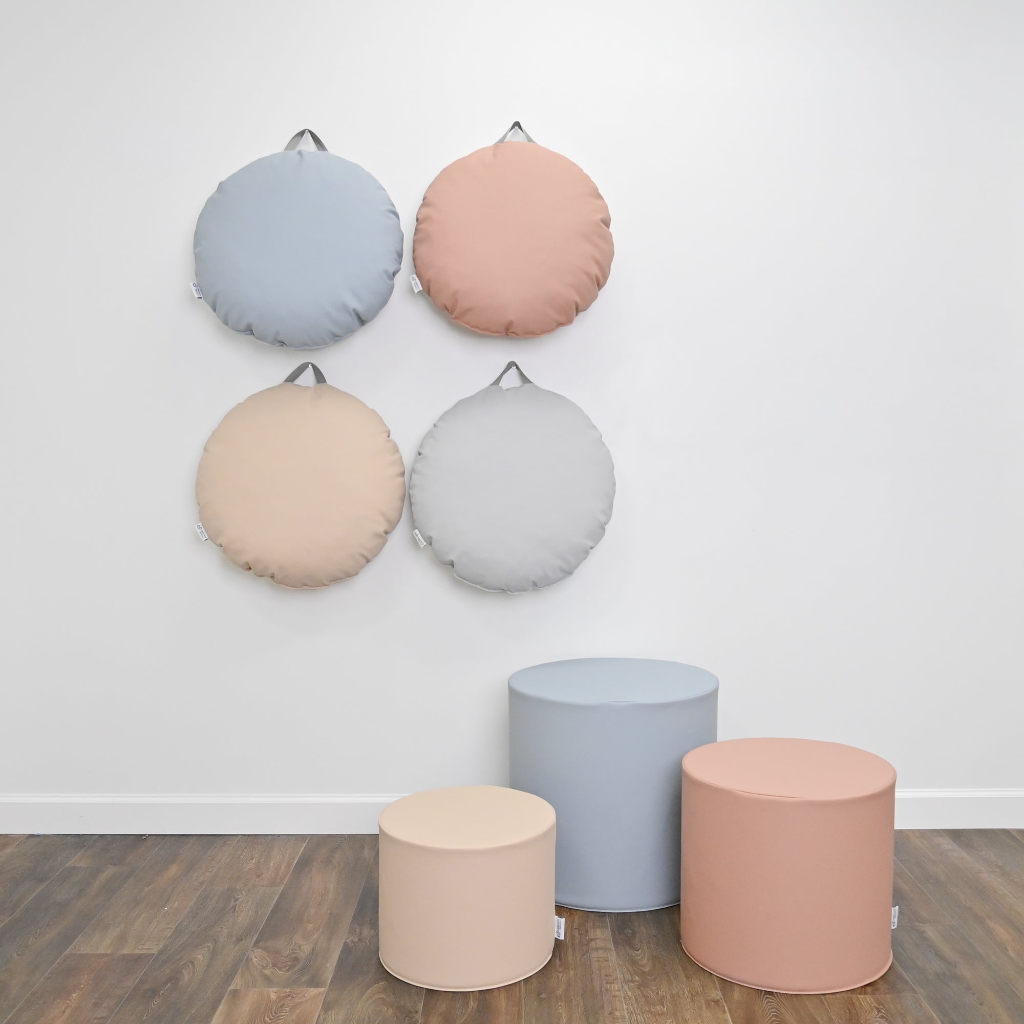 Mejora tu espacio educativo o de juego con nuestro juego de 2 minipufs redondos de 45x45 cm. Con espuma con certificación CertiPUR-US y cuero vegano de primera calidad, estos pufs ofrecen estilo y versatilidad. Equipados con asas para facilitar su transporte, son la combinación perfecta de comodidad y practicidad.
