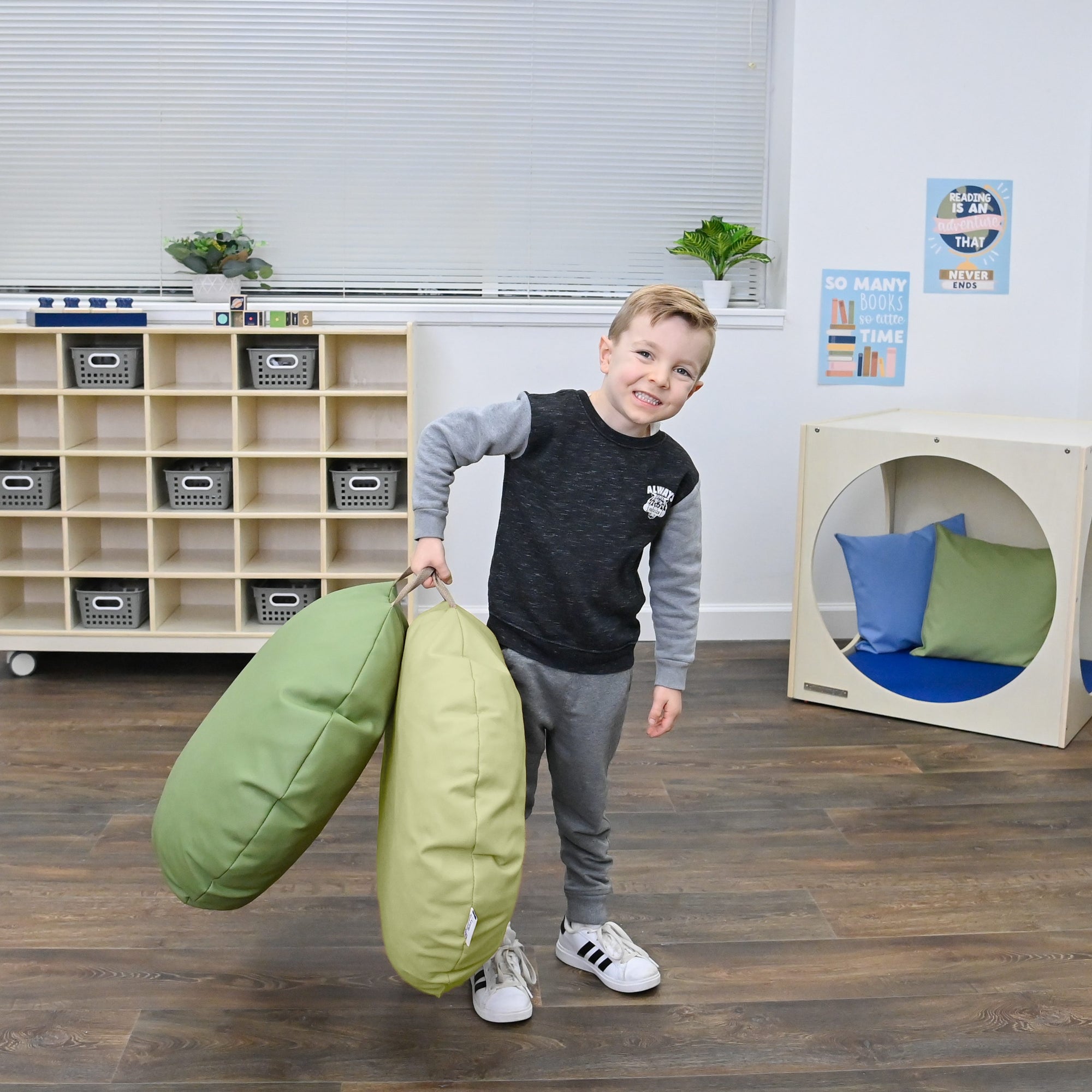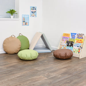 Mejora tu espacio educativo o de juego con nuestro juego de 2 minipufs redondos de 45x45 cm. Con espuma con certificación CertiPUR-US y cuero vegano de primera calidad, estos pufs ofrecen estilo y versatilidad. Equipados con asas para facilitar su transporte, son la combinación perfecta de comodidad y practicidad.