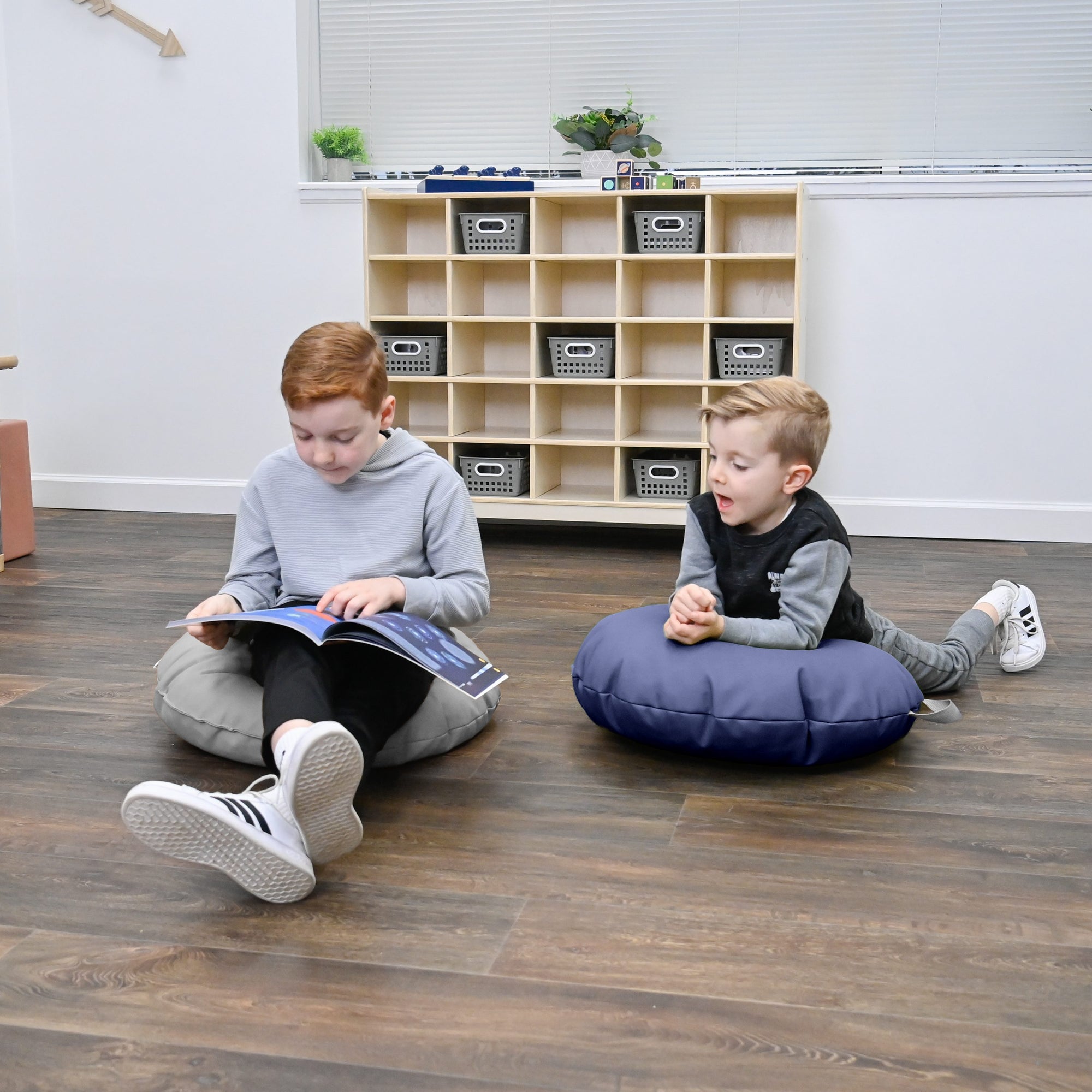 Mejora tu espacio educativo o de juego con nuestro juego de 2 minipufs redondos de 45x45 cm. Con espuma con certificación CertiPUR-US y cuero vegano de primera calidad, estos pufs ofrecen estilo y versatilidad. Equipados con asas para facilitar su transporte, son la combinación perfecta de comodidad y practicidad.