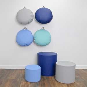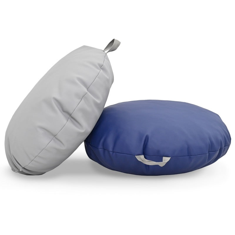 #60442 Mini puf redondo de 18 x 18 con asa - Juego de 2 - Gris y azul marino