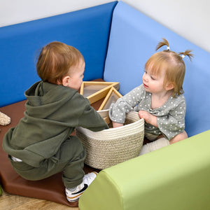 El Rincón Acogedor es un juego de escalada suave para niños pequeños, diseñado para trepar, gatear y relajarse. Fabricado con cuero vegano de poliuretano resistente al agua, es fácil de limpiar y se cierra de forma segura con cierres de velcro para mayor estabilidad. Mide 137 cm x 137 cm x 33 cm y cuenta con 2 años de garantía de durabilidad.