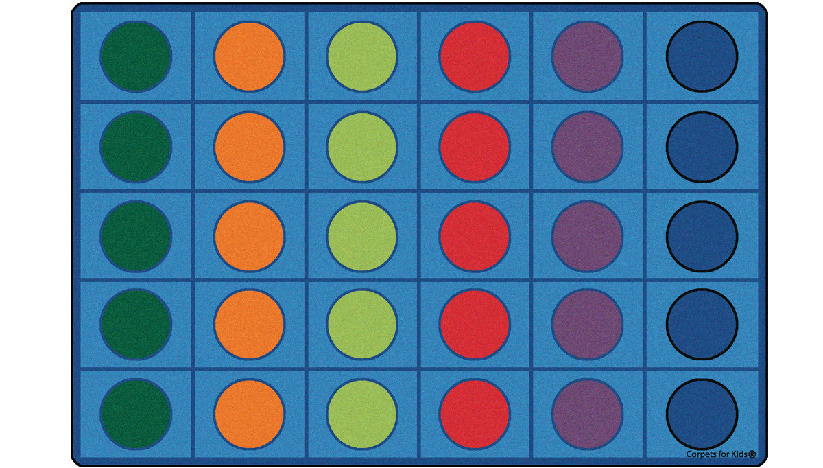 Las filas de círculos de colores primarios crean un espacio divertido para que niños de todas las edades se sienten y aprendan. Puedes elegir entre 30 espacios o nuestro tamaño más grande, de 36, ¡para una organización de aula óptima para niños de todos los tamaños!