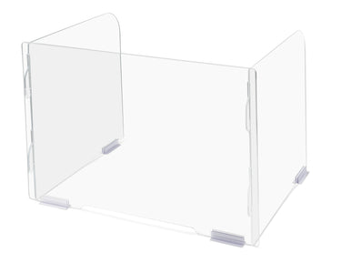 Mantenga a estudiantes y empleados protegidos con este protector de escritorio. Los tres lados de acrílico transparente brindan máxima seguridad y visibilidad, y su altura de 61 cm es perfecta para estudiantes o adultos más altos. El panel frontal cuenta con una abertura de 28 cm de ancho x 1,27 cm de alto en la parte inferior para deslizar papeles y otros objetos pequeños. Los ganchos de los paneles laterales se deslizan fácilmente en las ranuras del panel frontal para un montaje rápido, y los cuatro cierres incluidos tienen bases adhesivas para mantener los protectores en su lugar y evitar que se deslicen. Los paneles laterales se pueden extender hacia los lados hasta una abertura de aproximadamente 68 cm para que los niños tengan más espacio si lo desean. No se necesitan herramientas para el montaje. Los cierres no son reutilizables y se pueden comprar cierres adicionales por separado. Advertencia: Requiere montaje por parte de un adulto.