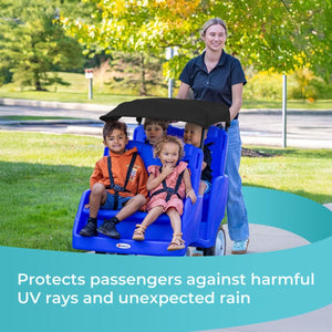 Los techos Gaggle® Parade™ 4 se venden por separado y están disponibles en cuatro colores diferentes. Los protectores de techo ofrecen protección total contra la lluvia y los rayos UV. 96,5 cm x 63,5 cm x 50,8 cm