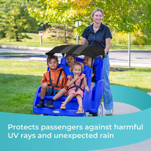 Los techos Gaggle® Parade™ 4 se venden por separado y están disponibles en cuatro colores diferentes. Los protectores de techo ofrecen protección total contra la lluvia y los rayos UV. 96,5 cm x 63,5 cm x 50,8 cm