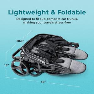 La carriola doble Gaggle Roadster Duo ofrece comodidad y practicidad para dos niños a la vez. Su diseño ligero y elegante, con asa ergonómica y ajustable, facilita su manejo en cualquier superficie. Los asientos se reclinan de forma independiente y el arnés de 5 puntos mantiene a los niños seguros durante el paseo. La capota extensible protege a los niños del sol y las inclemencias del tiempo, y la amplia cesta portaobjetos permite llevar todo lo necesario en cualquier lugar. El portavasos móvil mantiene el vaso con boquilla a mano. La carriola doble Roadster cabe por puertas estándar y cumple con las normas Disney.
