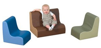 Este conjunto de asientos crea una acogedora zona de estar para hogares, escuelas y bibliotecas. El conjunto de tres piezas consta de dos sillas y un sofá de dos plazas. Las sillas y el sofá de dos plazas tienen una altura de asiento de 15 cm. Este juego no incluye marco de madera ni grapas, y está relleno de espuma sólida, lo que lo hace suave y seguro. Su funda de cuero vegano, fácil de limpiar, facilita su desinfección.