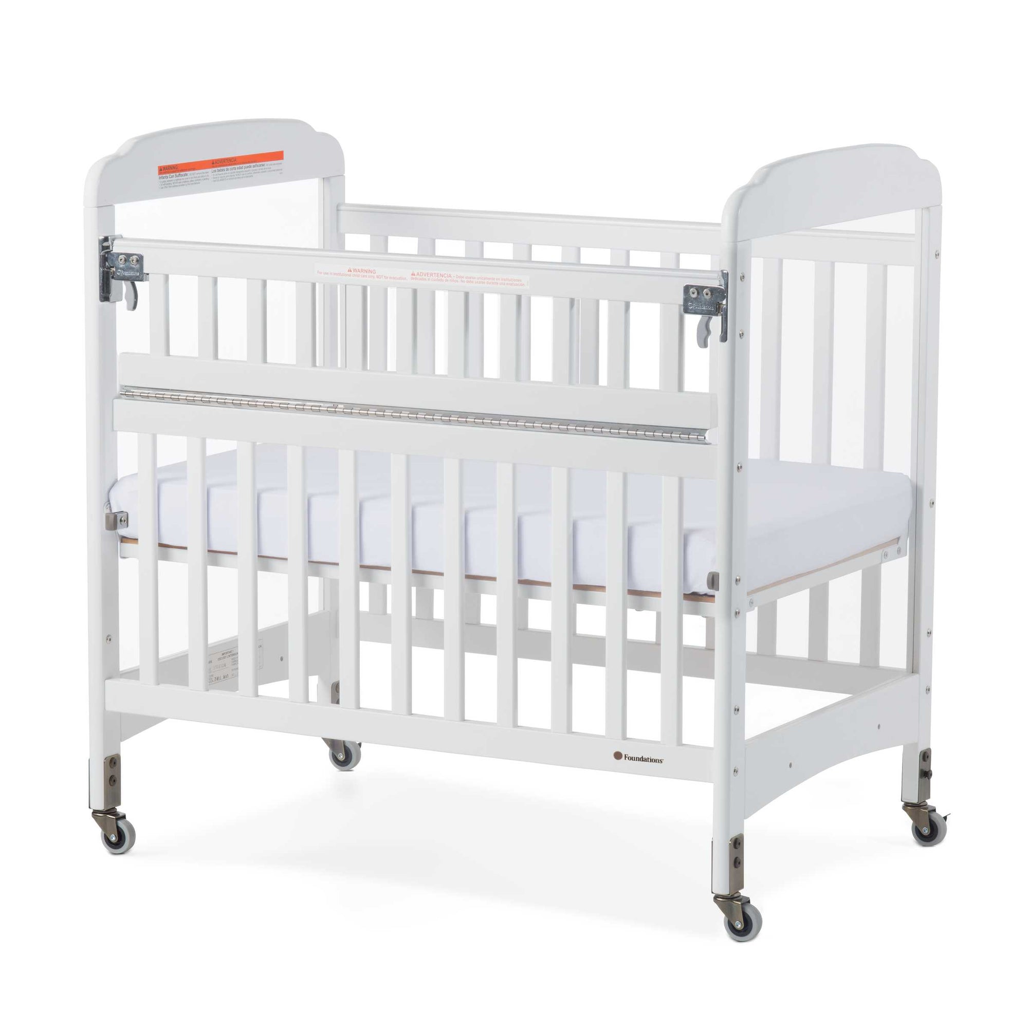 La cuna número 1 en ventas en guarderías de EE. UU. se actualizó con ingeniería avanzada para convertirse en la nueva generación de cunas para guarderías. La cuna Serenity SafeReach de nueva generación cuenta con un lateral SafeReach de longitud completa con un gatillo de dos dedos para un acceso más rápido al bebé. Las ruedas de dos pernos sostienen la cuna, lo que permite una vida útil más larga y segura. Incluye un colchón InfaPure™ ultraduradero de 7,6 cm.