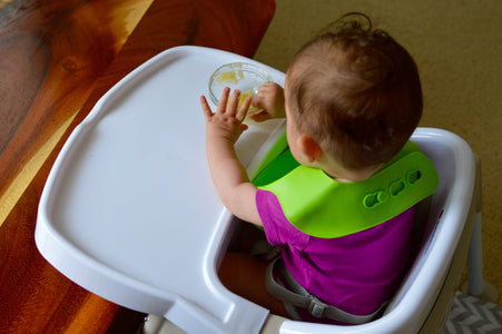 El niño puede sentarse de forma segura cuando llega la hora de comer.