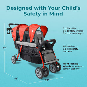 #18613 Cochecito tándem deportivo Gaggle® Trio, ROJO