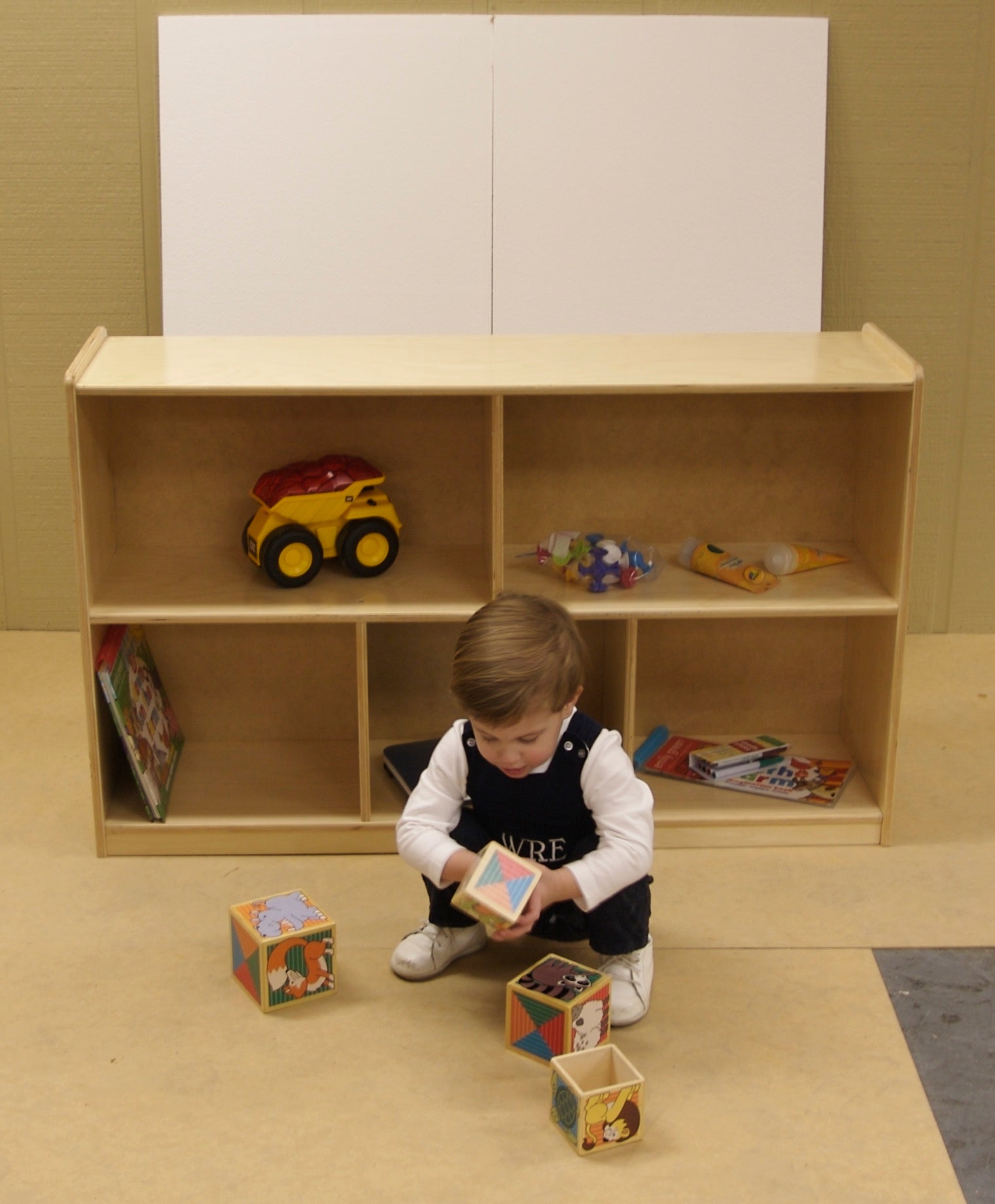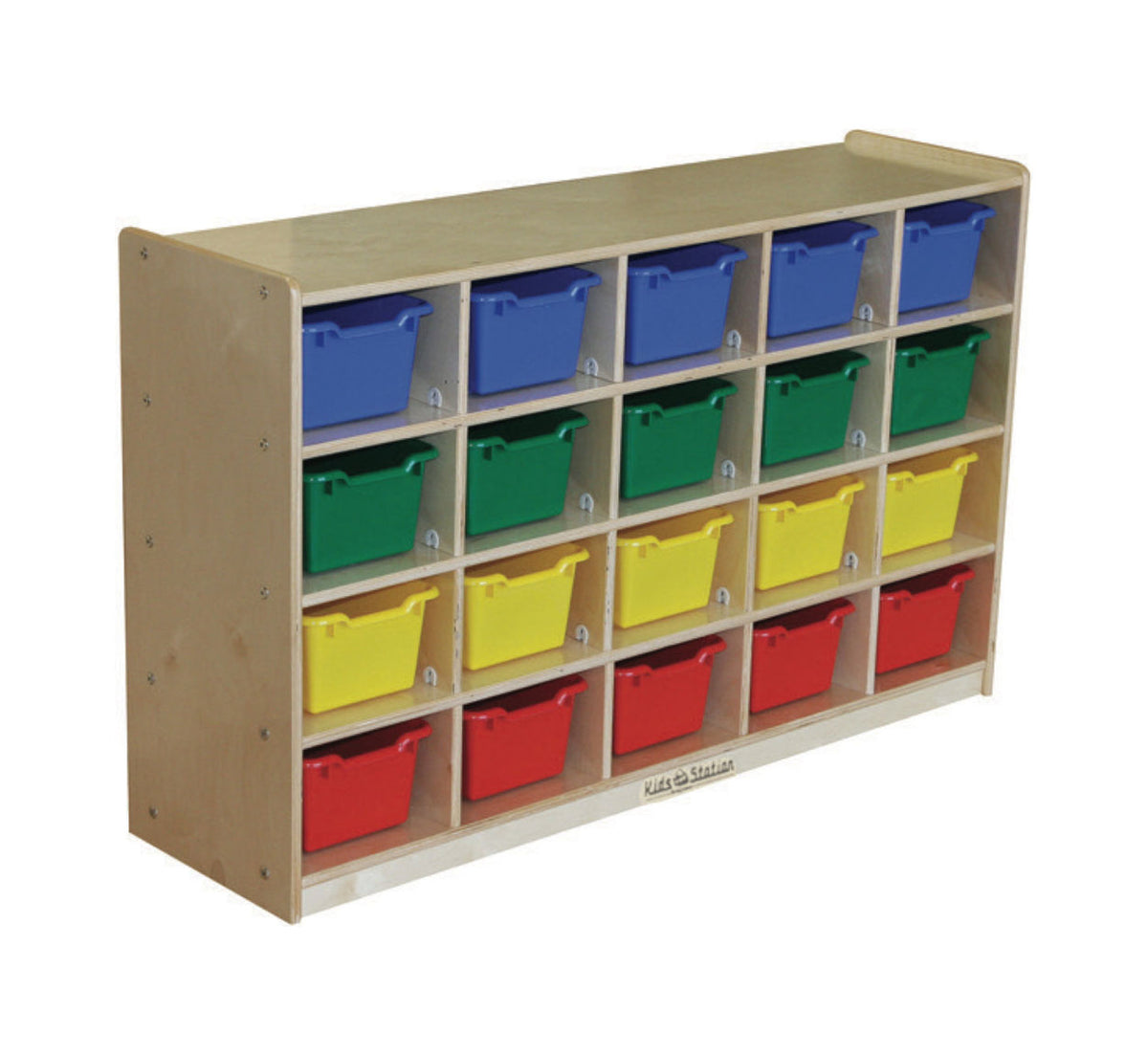 Los armarios Kids' Station se fabrican artesanalmente en EE. UU. con abedul báltico de primera calidad. Muchos de nuestros armarios se envían completamente ensamblados para una instalación fácil y rápida en el aula. Estos armarios completos también incluyen una placa protectora para evitar que los objetos se caigan.