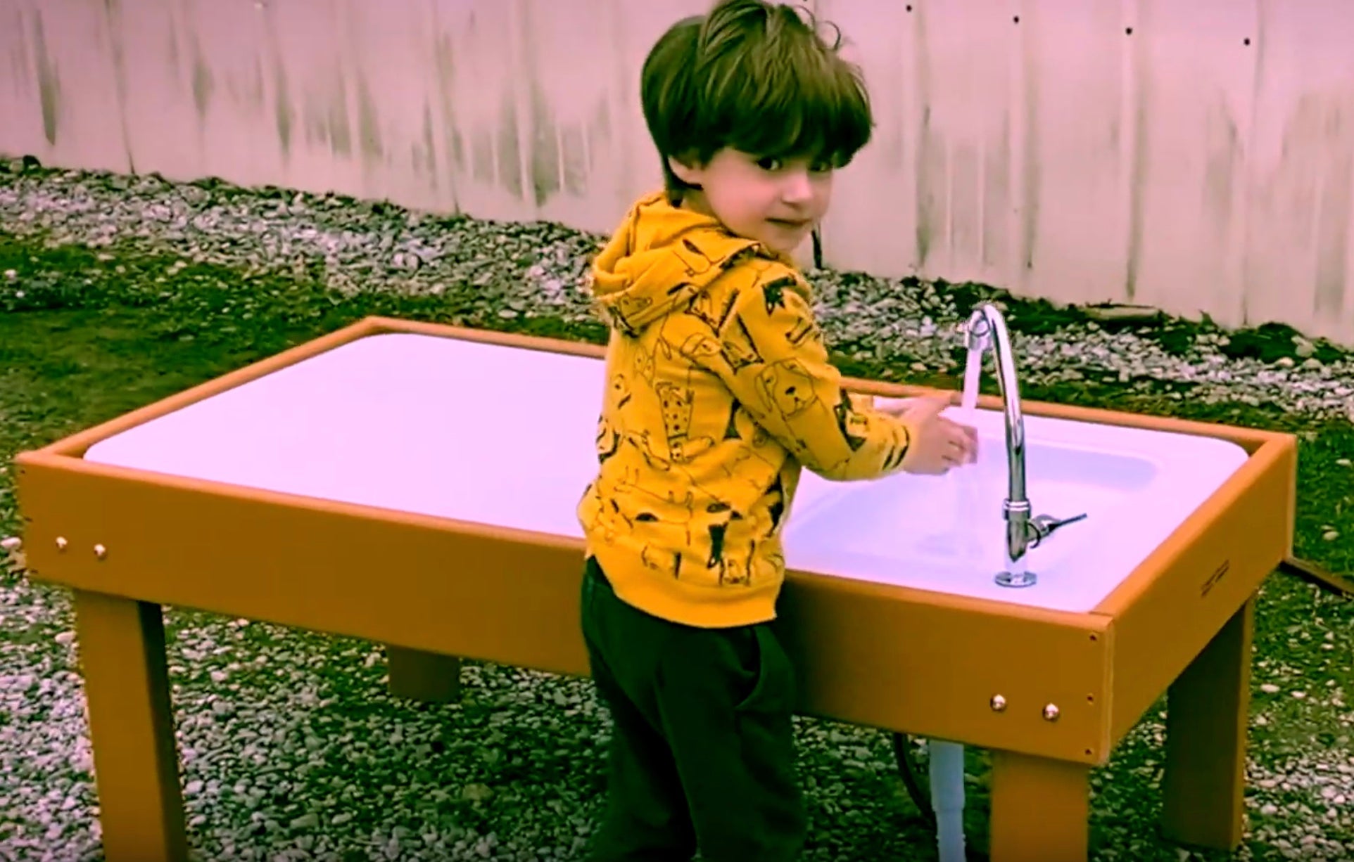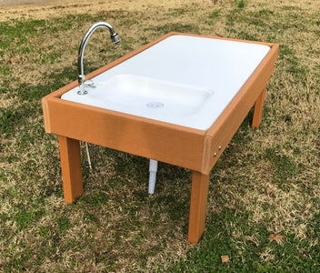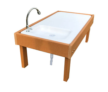 Presentamos la nueva mesa de barro para exteriores Kids' Station. Esta versátil mesa de barro es ideal para que los más pequeños jueguen y también se puede usar para lavarse las manos o para realizar diversas actividades. Simplemente conecte la manguera del jardín y regule el flujo de agua con el grifo. El fregadero está hecho de plástico duradero moldeado por soplado y la estructura exterior es de plástico reciclado que no se astilla ni se decolora. El fregadero tiene desagüe con tapón y manguera que se puede conectar a un cubo o al suelo. Mesa: 122 cm de ancho x 66 cm de profundidad x 48 cm de alto.