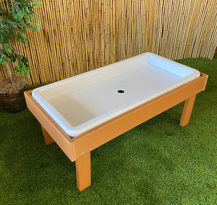 Presentamos la nueva mesa multiusos para exteriores Kids' Station. Úsala para diversas actividades, desde jugar al barro hasta disfrutar de un espacio aislado para bebidas y refrigerios. El recipiente aislado está hecho de plástico duradero moldeado por soplado y su marco exterior es de plástico reciclado que no se astilla ni se decolora. Mide 122 cm de largo x 61 cm de ancho x 16 cm de profundidad.
